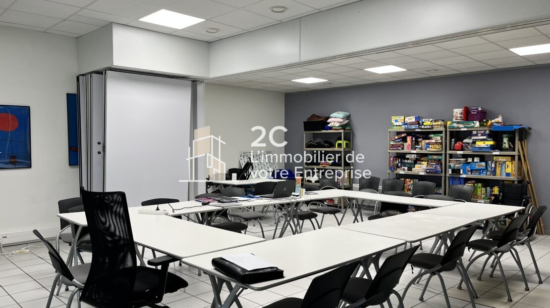 Composition (nombre de bureaux, salle de réunion, locaux sociaux, en rdc ou autre…): 1ère partie (466 m², si division) composée d'un hall d'entrée avec ouverture par double porte coulissante automatique vitrée et volet roulant, 1 espace accueil, 1 salle d'attente, 8 bureaux, dégagements, 1 salle technique, 1 salle de réunion, 1 espace cuisine, open space, 4 blocs sanitaires PMR, locaux techniques, réserve, sortie de secours, couloir menant à la 2nde partie de bureaux (315 m²) et composée de 5 bureaux, une salle de réunion et une partie atelier/stockage (110 m² environ compris dans les 315 m² de la 2nde partie) équipé d'un espace archives, d'une porte d'accès électrique (volet roulant), d'un bloc sanitaires PMR.